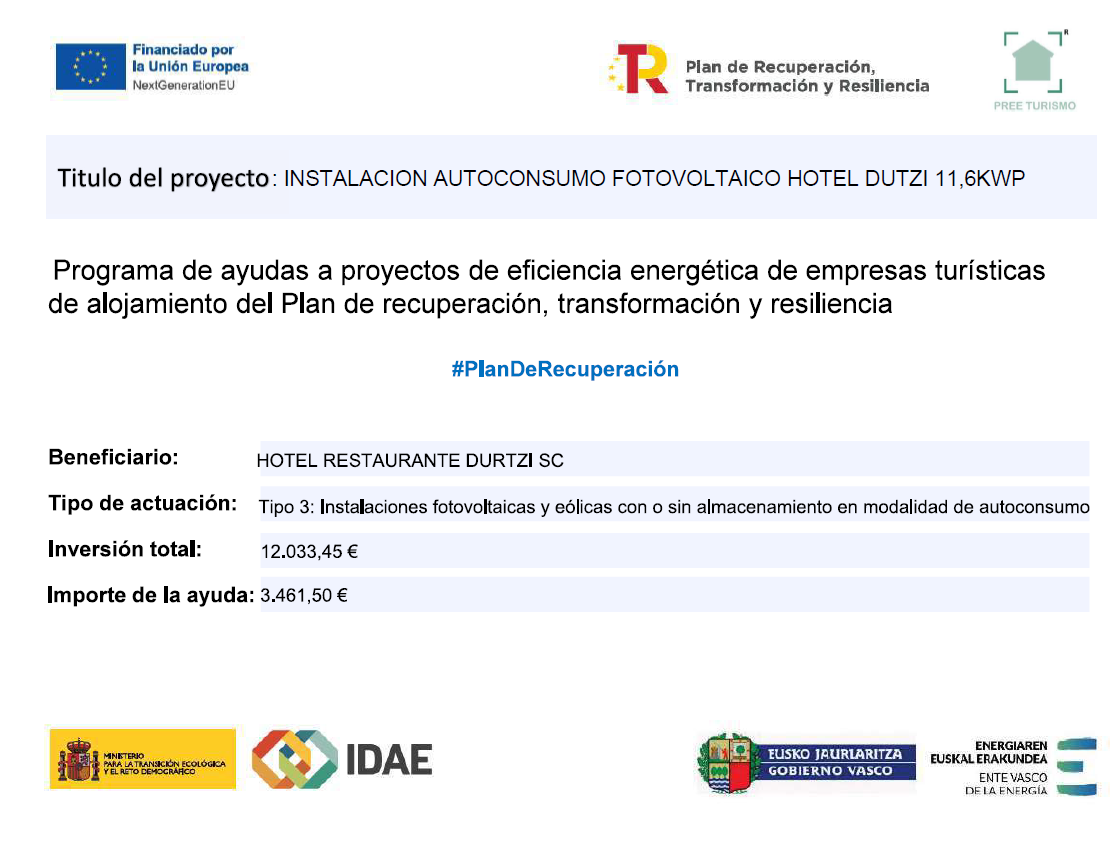 INSTALACION AUTOCONSUMO FOTOVOLTAICO HOTEL DUTZI 11,6KWP